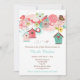 Pink and Green Floral Bird Houses Baby Shower Invitation