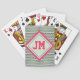 Pink and Green Hearts Pattern and Your Initials Playing Cards