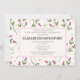A birthday party invitation with your custom details inside an eggshell coloured frame with a pink border. Guest of honour's name is written in a bold font. The backdrop is a pattern of hand drawn pink wildflowers with long green stems and leaves on a cream eggshell coloured background. Pink circles and sprigs also decorate the design. Whimsical and pretty floral design.