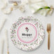 Pink and Green Long Stem Wildflowers Birthday Paper Plate