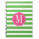 Pink and Green Stripes Custom Monogram Spiral Notebook
