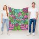 Pink and Green Tropical Leaves Fleece Blanket