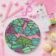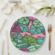 Pink and Green Tropical Palm Leaves Print Paper Plate