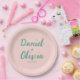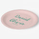 Pink and Green Wavy Wedding Paper Plate