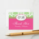 Pink and green wedding thank you card. Matching invitation cards, rsvp cards and save the dates are available in this store.