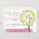 This precious baby shower invitation is a wonderful way to invite your guests to join you in celebrating your new arrival. This design has a white background with a fun whimsical green and brown tree with pink flowers and a cute pink bird on the right side. Your party details go to the left side and are completely customisable. Just add your Shower details and you are ready to go!
