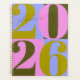 Artful and bold, this personalized planner spiral notebook features a bold four color design with large Arabic numerals to denote the year and two areas of text for personalization: the notebook's use (planner, notes, school, etc.) and contact information on the backside of the notebook to help return the book to its owner if lost. The design of bold blocks of candy pink, periwinkle blue, deep olive green and moss bring a feminine and fearless vibe with you into the new year, make it the best one yet!
