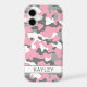 Customise this pink grey and white camouflage iPhone 17 case with your name in a trendy modern CAP font in grey on white. It's so modern, girly and trendy! Perfect for any country girl!