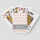 These cute and modern pink white and grey chevron stripe playing cards can be personalised with your name. Artwork © Chrissy H. Studios, LLC. All Rights Reserved.