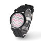 Custom Monogram Glitter watches. Pink and Grey Chevron with personalised Monogram.