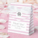 Cute pink and grey elephant baby shower party favour box. Pastel stripes design with zoo animal icon. Custom thank you for coming message. Cute lines print with elegant script typography and adorable calf. Customisable background colours for boy or girl Gender neutral design for babyshower party celebration. Fun party supplies for new baby / newborn child. Jungle / safari theme with striped background.