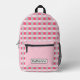 Pink and grey plaid printed backpack