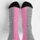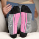 Keep your tootsies toasty in these super cool socks! These socks with artwork by Buttercup's Clothing and Collectables features a fun geometric pattern of squares in shades of grey and pink , with contrasting heel and toe. Available in Women's and Men's sizes.