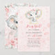 Pink and Grey Watercolor Elephant Girl Baby Shower Invitation