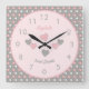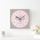 Pink and grey with polka dots and name square wall clock