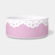Pretty eyelet lace trims the top of this pet bowl. Personalise with the name of your precious one.