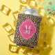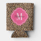 Cute trendy monogrammed can or bottle cooler with a girly animal print pattern. Personalise it with a custom monogram or other text in a chic quatrefoil frame. Click Customise It to change text and fonts to create a unique one of a kind gift for your bridesmaids and wedding party! Contact me before ordering to customise patterns or design to coordinate with any wedding colours.