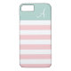 Pink and Mint Striped Monogram iPhone 7 Case