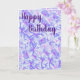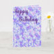 Pictured are pretty pink and moave Frangipani flowers with a happy birthday message
