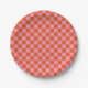 Pink and Orange Check Round Paper Plate