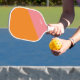 This fun orange and pink colour block pickleball paddle is perfect to stand out on the court. Add a name to be truly unique!