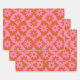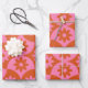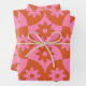 Pink and Orange Flowers on Mid Century Scallop Wrapping Paper Sheet