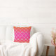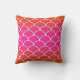 Stunning pink and orange decorator pillow. Unique symmetrical semicircle pattern is based on Japanese wave style art. Don't these colours remind you of a beautiful sunrise?