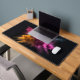 LOVE this desk mat!  It's large!  It fits across my desk. No need for a small mouse pad now!  Color and print are excellent.  Quality seems to be excellent too.  Delivery was about 3 days sooner than expected.  I think this is one of my favorite Zazzle products! Excellent.  The color is vibrant and true to what I expected.