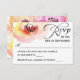 This lovely wedding RSVP card coordinates with the "Pink and Peach Watercolor Floral" wedding invitation. It features watercolor blooms in bright shades of pink and peach with a touch of yellow. Shown here with a contemporary text layout, edit the sample text with your RSVP date. You can change the wording to suit your preferences and personal style.