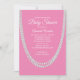 Long strings of pearls and fancy white type, on a pretty pink background decorate this Baby Shower Invitation, making it perfect for the elegant, classy or 1920's vintage themed party. If additional items are needed for your event, just contact us at prettyfancyinvites@gmail.com with your request.