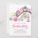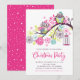 Pink and Purple Cute Festive Owls Christmas Party Invitation