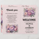 Celebrate the union of Olivia and Andrew with this beautifully designed wedding program. Featuring a soft pink background adorned with delicate floral arrangements, this program provides a warm welcome to guests attending the ceremony. Inside, you'll find a detailed itinerary of the day's events, including the ceremony and party details, ensuring everyone feels included in this special occasion. Perfect for capturing the essence of love and gratitude, this wedding program is a must-have for any couple looking to make their day memorable.