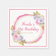 Beautiful birthday party napkin with a bright pink, purple and gold faux glitter frame with floral flower arrangements. Perfect for a birthday party. The words can be changed to suit your own details or requirements