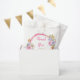 Beautiful birthday party favor bag with a bright pink, purple and gold faux glitter frame with floral flower arrangements. Perfect for a birthday party. The words can be changed to suit your own details or requirements