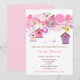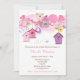 Pink and Purple Floral Bird Houses Baby Shower Invitation