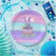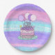 Pink and purple pretty hand drawn birthday cake with sprinkles and balloons, hearts and stars girl's birthday party paper plates.