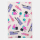 Pink and Purple Make Up Cosmetics Pattern Tea Towel
