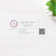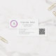 Modern business package insert card featuring a simple yet professional design with your monogram inside of a pink and purple circle. Use the template to generate a QR code or remove it in the design editing tool.