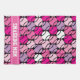 Pink, purple and white tennis ball pattern on black background.