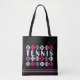 The tote bag is designed to complement the vibrant and visually striking image described earlier, featuring pink and purple tennis balls arranged in four rows horizontally on a black background. This tote bag offers both practicality and style, making it a versatile accessory for various occasions.