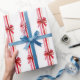 Lovely pink and red Christmas bows and their dangling ribbons decorate this wrapping paper. They are unusual and so cute as well as elegant and romantic They have a vintage watercolor origin but are thoroughly modern in their attitude. This roll is distinguished by the horizontal or crosswise orientation of the rows. Friends and family will be delighted to receive your gifts wrapped in these pretty gift wraps.