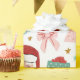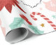 Pink and Red Christmas themed gift wrap featuring Christmas trees, candy, presents and even Santa Claus.