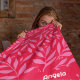 Trendy Fleece Blanket with pink branches on a red background. Personalise this with your name, business, or anything you like!
