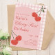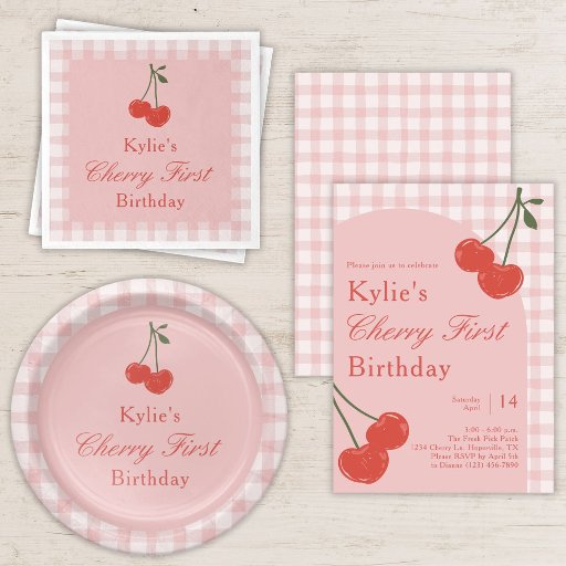 Pink and red girl's cherry birthday invitations are the perfect addition to any girl's cherries themed 1st birthday. These invitations feature a classic gingham plaid and cherry design that will look great with your other party supplies and decorations.