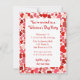 Wonderful party invitation for any Valentine's Day celebration. It features little pink and red hearts all around the outside of this invitation. The inside is white with red customisable text.