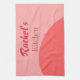 Wipe down your counter tops using these fabulous customisable kitchen towel. Displaying a pink and red background, the red semi-circle is located to the bottom left of the towel. The rest of the design is pink. Your name is written at the top in complementary red font. "Kitchen" is written under your name in neat print. Customise yours today!