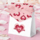 Adorable pink and red Valentine's Day Baby Shower favour box with retro style hearts.