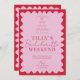 Hen Do Invite in Red and Pink Retro Wavy Border Hen Do Weekend Bachelorette Weekend Invite with Hen Bachelorette Weekend Itinerary.