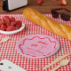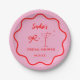 Pink and Red Wavy Retro Border Bridal Shower Paper Plate