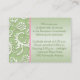 This sage green and pink floral damask enclosure card matches the wedding invitation and other items shown below.